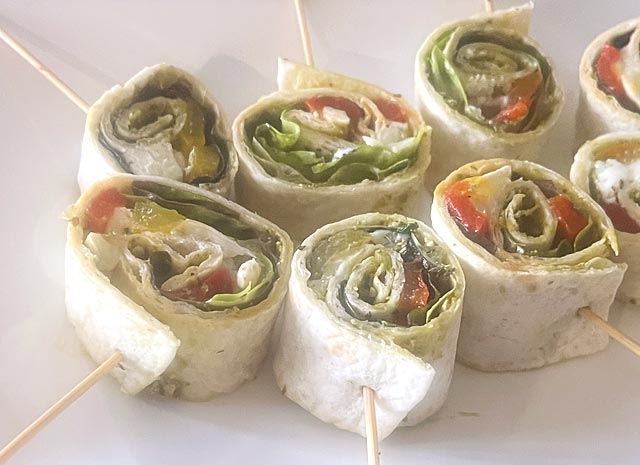 5 - Roulez chaque wrap de manière serrée et répartissez des pics en bois (7 ou 8);